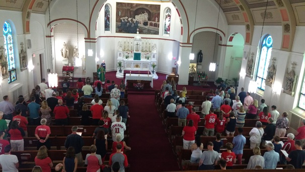 “It was great,” says Maria Bailey, who, with her husband Mike and five children, of Silver Spring, Maryland, was attending the Nats Mass for the first time. Her 11-year-old son was one of the altar servers [recruited by Fr. Andrew Gonzalo immediately before the service].