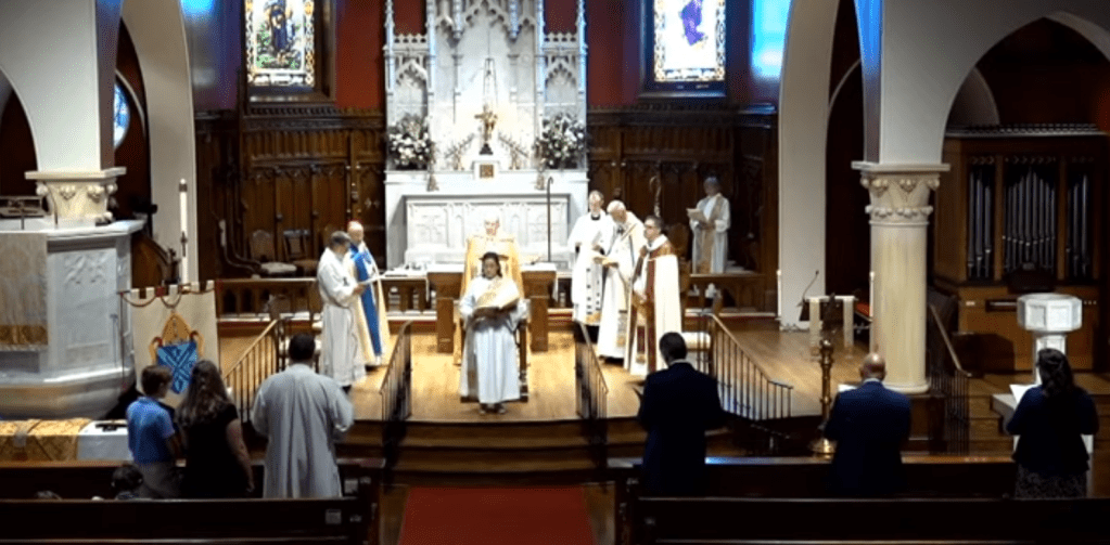 As a live-streamed liturgy the Georgia ordination was to my mind much more effective. I found the pieces by the virtual choirs to be very effective and moving. They were in varied musical styles and by various groups reflecting something of the breadth of the diocese’s liturgical traditions. Some of the effectiveness of the hymns came from the video components, such as the banners of the parishes of the diocese being processed down the aisles of each church in the opening hymn. But it was also because of the engaged and varied faces of the singers. There was more of a sense of the virtual congregation. Also the varied camera angles in the church were very effective in Savannah, Particularly important was the fact that for much of the time the viewer was seeing the liturgy from the floor of the church, not an elevated angle looking down.