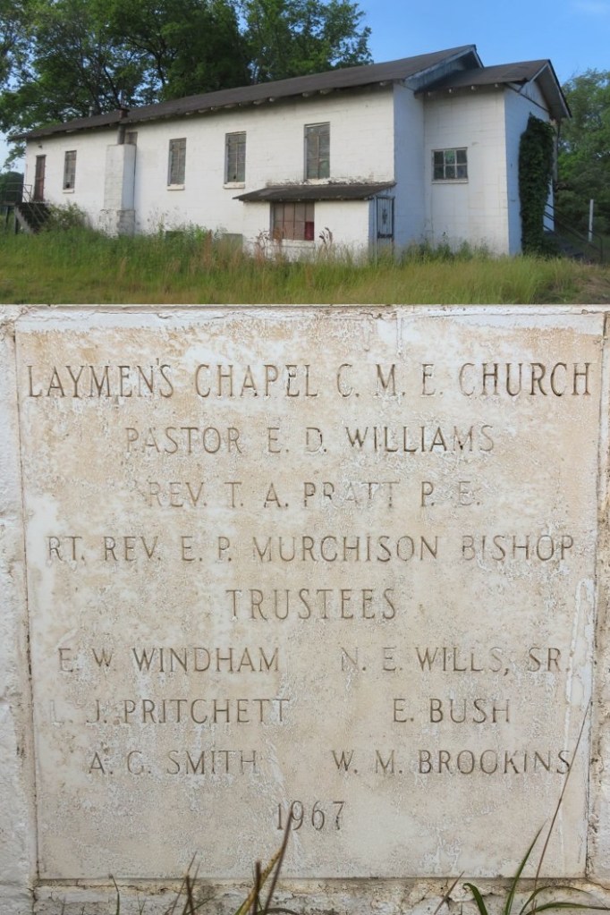 As of 2021, Laymen’s Chapel Christian Methodist Episcopal Church was a closed building on Vanderbilt Road on the northern edge of the East Birmingham neighborhood. Its immediate neighborhood on the flood plain of Village Creek, north of I-20/59 had been level and redeveloped as Greenwood Park (opened 2012).