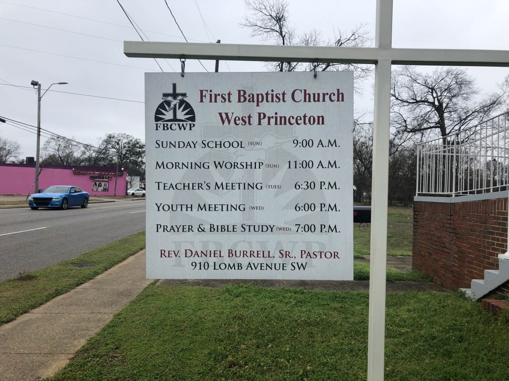 This study and straightforward Baptist church is located at 910 Lomb Avenue between Princeton Baptist Medical Center and this historic Rickwood Field (America’s oldest baseball field) in Birmingham’s West End. The congregation was organized by the Reverend A. C. Morris in May 1903 (seven years before Rickwood) and the current building erected in 1965 with the cornerstone laid in 1967.