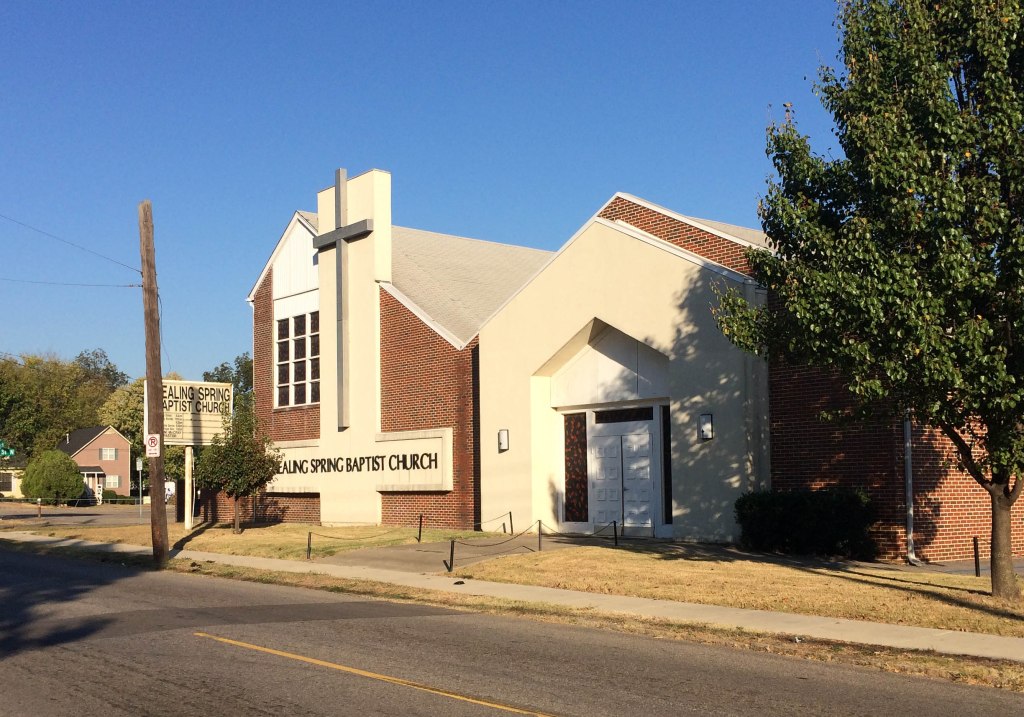 Healing Spring Baptist Church was founded in September 1932 and located at 4721 1st Avenue South in East Avondale, a location that is now no longer residential, but given wholly to industrial uses. The congregation relocated to the present site in September 1976. The building had been erected in the early 1960s by the Woodlawn congregation of the Church of God (Cleveland, Tennessee) which had met on this site since the late 1940s. The first church on the site was Woodlawn United Methodist Church. It was located here before moving to First Avenue North.