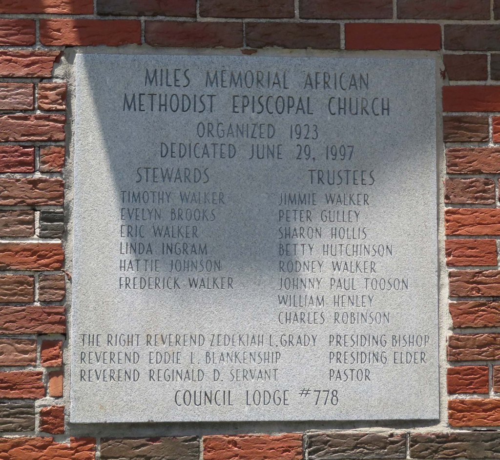 Miles Memorial African Methodist Episcopal Church purchased the building and dedicated it on June 29, 1997. Earlier it was Tarrant Church of the Nazarene. The Miles Memorial congregation dates from 1923. The pastor at the time of the dedication was Reginald D. Servant.