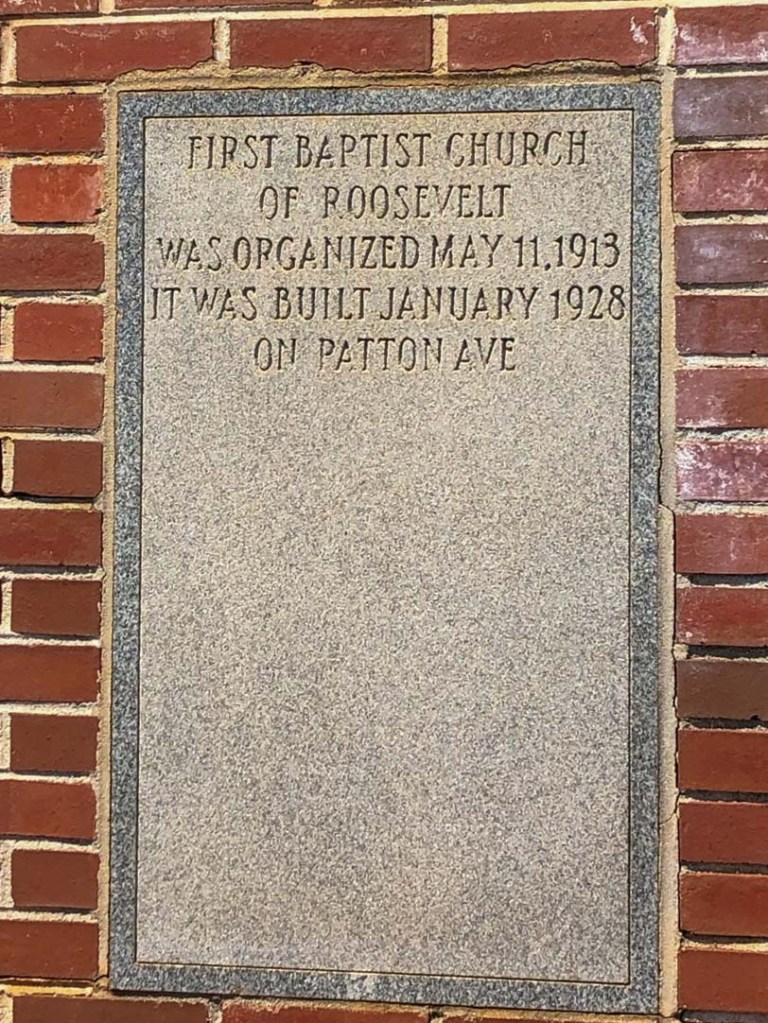 While traveling the Bessemer Super Highway (US-11) from Bessemer toward central Birmingham in Alabama, you’ll spy a stately mid-twentieth-century Romanesque Revival church on the right. It is the First Baptist Church of Roosevelt City. Earlier the church was located a block away on Patton Avenue.