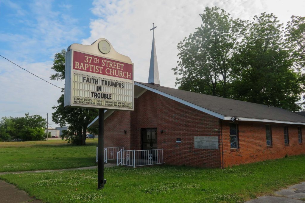 37th Street Baptist Church is located in Birmingham’s Kingston neighborhood on a street with many now vacant lots and some pre-World War II houses. It was erected in 1970 when W. E. Thedford was pastor. On the opposite side of the street and on the corner is Zion Star Apostolic Overcoming Holy Church of God. That Pentecostal church was one of the first that my students examined for our digital humanities project Magic City Religion.