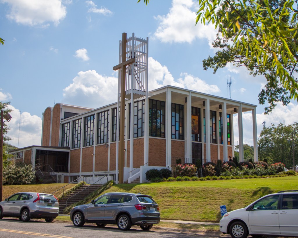 St. George Melkite Greek-Catholic Church built a striking mid-century-modern building near Birmingham’s George Ward Park in 1957. It was designed by the Birmingham architectural firm of Van Keuren and Davis, now known as Davis Architects. I always tell my students that this church was erected by the same architects and at the same time as Samford University’s Georgian Colonial campus on Lakeshore Drive. St. George represent the path not taken by Samford’s trustees when the architects offered them a choice between a classic and modern style., There is much to say about St. George’s some of which my students have said in this essay on its iconography and this essay on its worship. The church is best known in Birmingham for its Middle Eastern Food Festival held every fall. It is coming up this year in just a week.