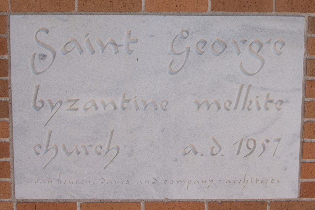 Despite the modern style of the building, the cornerstone features a script that evokes the Arabic that the congregation originally used in worship. The cornerstone describes it as “Byzantine Melkite.” Byzantine meant they worshiped according to the Byzantine-rite like Eastern Orthodox churches. Melkite came from the Syriac for king, and originally applied to all those Christians in Syria and adjoining lands who followed the emperor in Constantinople in adhering to the decrees of the Council of Chalcedon. Later it came to apply more narrowly those who entered into full communion with Rome, and thus became Eastern Catholic rather than Eastern Orthodox. The current name perhaps makes that clearer. “Melkite” signifies they are from the Levant (Syria and adjacent lands) and “Greek Catholic,” that they follow the Byzantine (or Greek) tradition while being in full communion with the Roman pontiff.