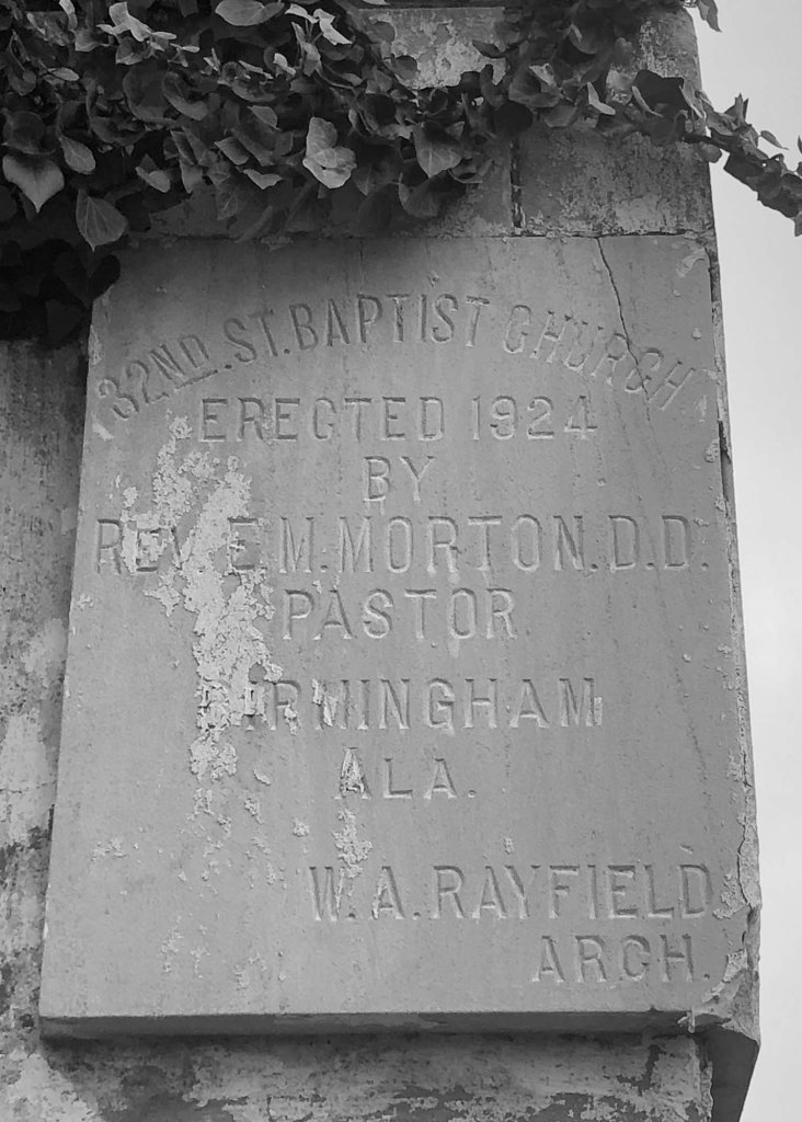 Thirty-Second Street Baptist Church was designed by the pioneering African-American architect Wallace Rayfield and erected in 1924 at 518 32nd Street South. At the time of its erection, the eastern section of Birmingham’s southside neighborhood was an African American residential neighborhood. In 1996 it was documented with photographs and measured drawings for the Historic American Buildings Survey. By the end of the twentieth-century, it had long since become predominately commerical and the congregation moved to west to Powderly. For years, the church was vacant. Then it suffered a fire. Rejuvination plans included making it into luxury condomiums or a small private school. But the building remained vacant for years.