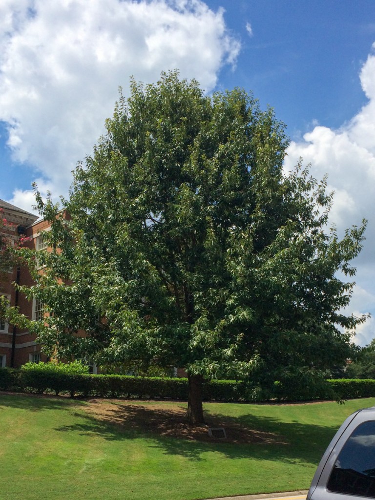 This tree was planted here after spring 2005, perhaps as late as 2007. In 1996, as the original Sherman Oak was ailing from lightening strikes and old age (it was about 200 years old). Acorns were gathered from the tree and nurtured into seedlings that were distributed to alumni at homecoming in fall 1997 (Seasons: The Magazine of Samford University, fall 1997, p. 10). I’m told one of these seedlings was planted on Samford’s campus Talbird Circle and that a few years later it was realized that this was not the right location for a large tree. So after a large tree planted in the 1960s had been removed from in front of Samford Hall, this Sherman Oak was moved from Talbird Circle to its current location in front of Samford Hall.