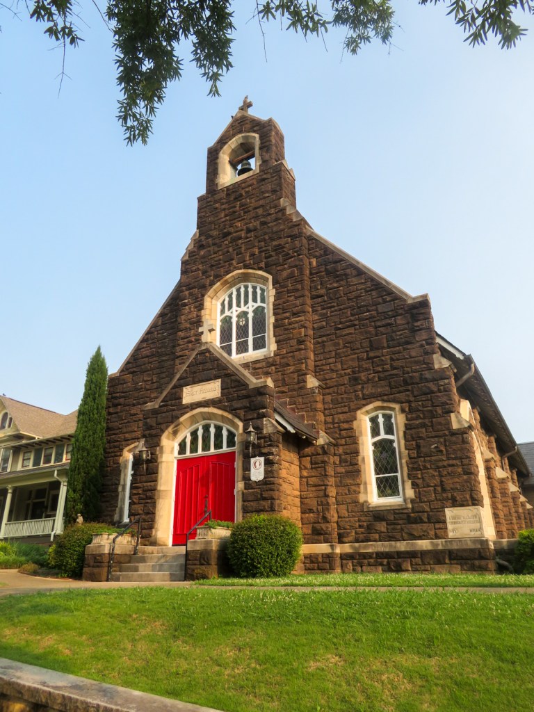 In addition to the cornerstone, the church also has a name stone over the front door. Much more on the architecture of the building is available in John Schnorrenberg’s Walking Tours of Birmingham Church’s which is available online from the Alabama Departmet of Archives and history here.