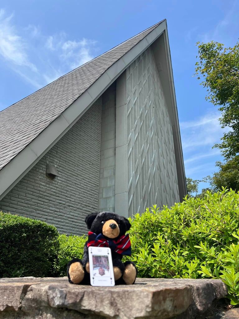 Yes, Fred is hogging the frame here, but back behind him is Shades Valley Lutheran Church. It is within easy sight of Grace Church (our previous site). It is a lovely mid-century A-frame that overlooks Shades Creek and the road that runs along side it. I once heard Martin Marty here. He is the most famous Lutheran and most famous American religious historian ever to wear a bowtie. Sadly, back then digital cameras were not a thing, and I didn’t have Fred, or else I would have gotten a photo of the three of us together!
