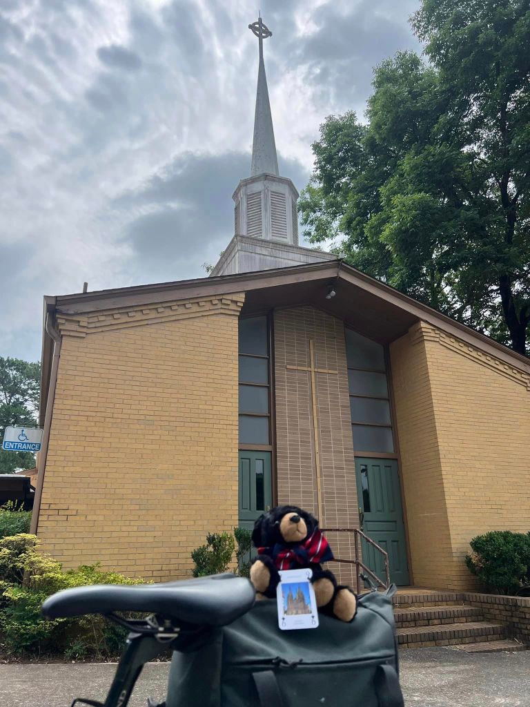 This is the home of Christ the King Anglican Church. This is the backside of the building, but since it faces the parking lot, I expect many people enter this way. It sits at the top of Shades Mountain, so it took a lot pedaling to get here. Knowing I had a long ride ahead, I did not venture further down the church’s steep campus. Christ the King is the second congregation to own this building, the first was Berney Points Baptist Church which erected this building, which is very visible from Interstate 65 after moving from its earlier location at the Berney Points intersection of Birmingham’s West End.