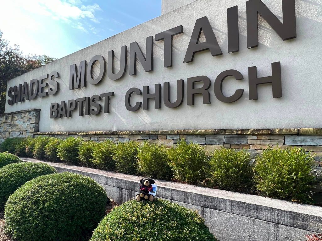 Shades Mountain Baptist Church was founded in 1911 as White’s Chapel Baptist Church, but now people just call it “Shades.” It has a large campus at the top of Shades Mountain on Columbiana Road, but Fred opted just to pose with the sign.