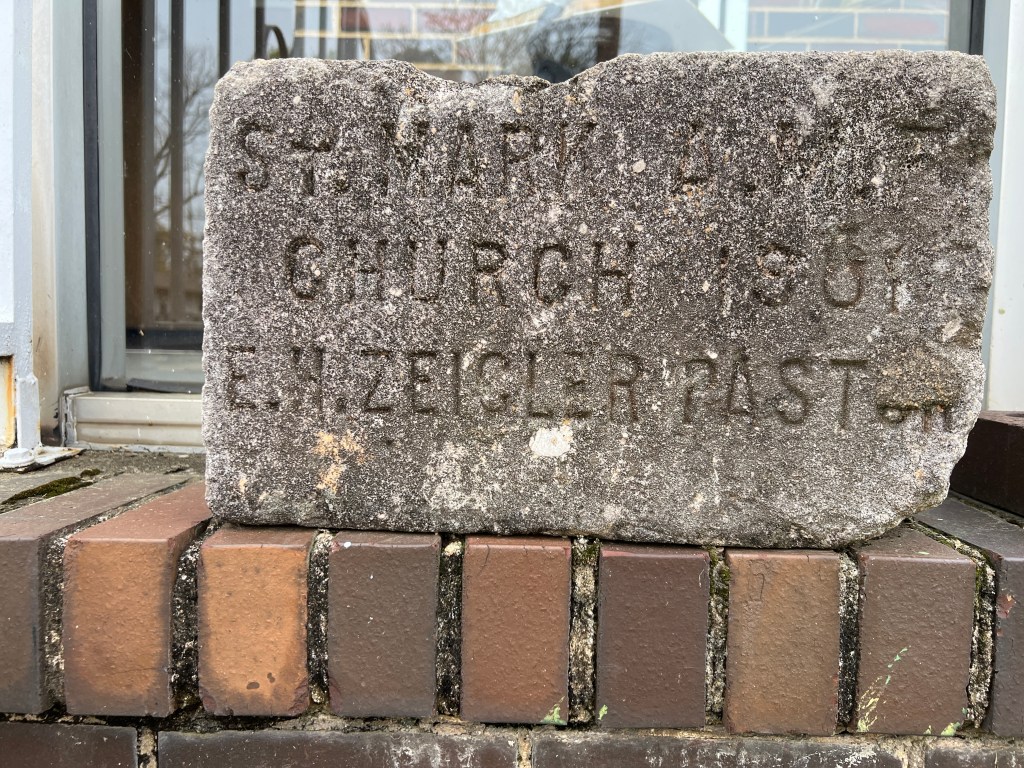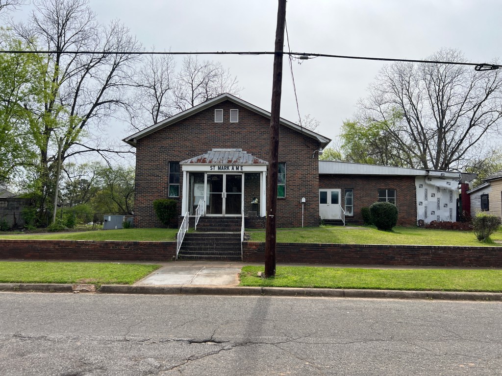 St. Mark African Methodist Episcopal Church is located at 1358 15th Place Southwest in Birmingham, just west of Elmwood Cemetery. On its front porch, inside the glass, is the cornerstone of its 1901 building. In a previous post I shared images of a 1949 stone for St. Mark A.M.E. on a building at 1529 6th Street North. That congregation moved to Mason City in 1999 and became New St. Mark A.M.E.