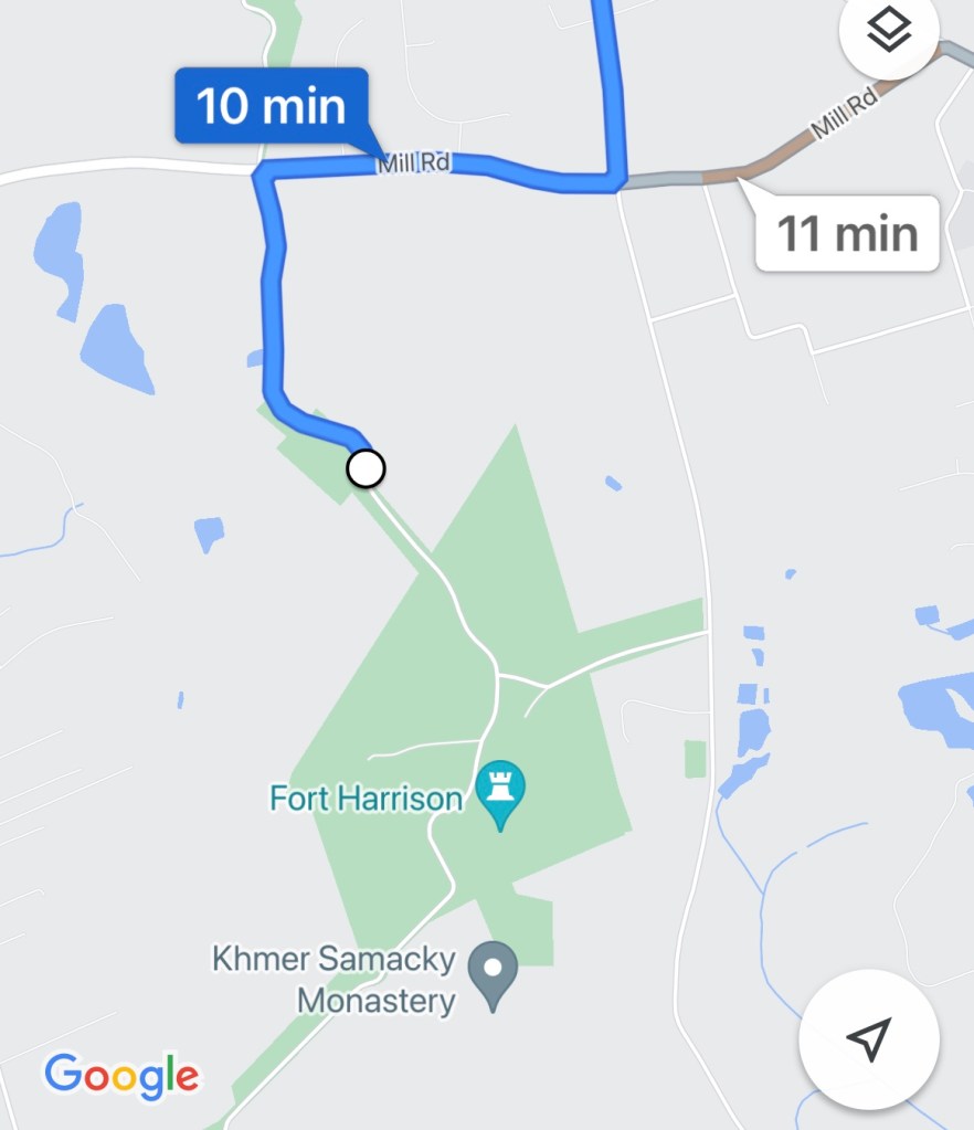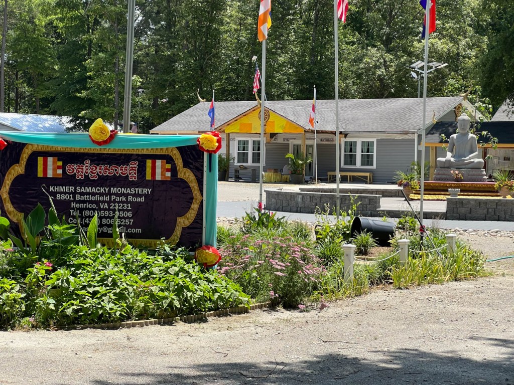 We look at Google Maps to figure out how far it is back to the car, and—behold!—we see that there is a Cambodian Buddhist Monastery near by! Energy returns! The game is a foot!