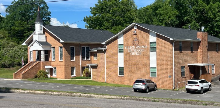 The cornerstone of the Methodist church’s older building was carefully preserved when it was faced with brick. It states that the stone was laid on September 1, 1925 when the congregation was known as Fulton Springs Methodist Episcopal Church South.