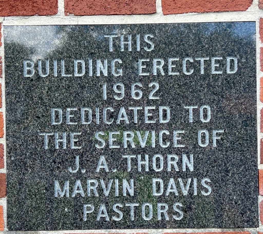 This Pentecostal Church was erected in 1962 in honor of the service of two pastors of the church. Presumably one was the former pastor at the time. It sits on a lovely hill side on a quite road near Red Gap, though the sounds of nearby roads, an interstate, and a railroad, probably often disturb its mountain tranquility. Its cornerstone is unusual in that it is black. The building’s address is 7267 Higdon Road.