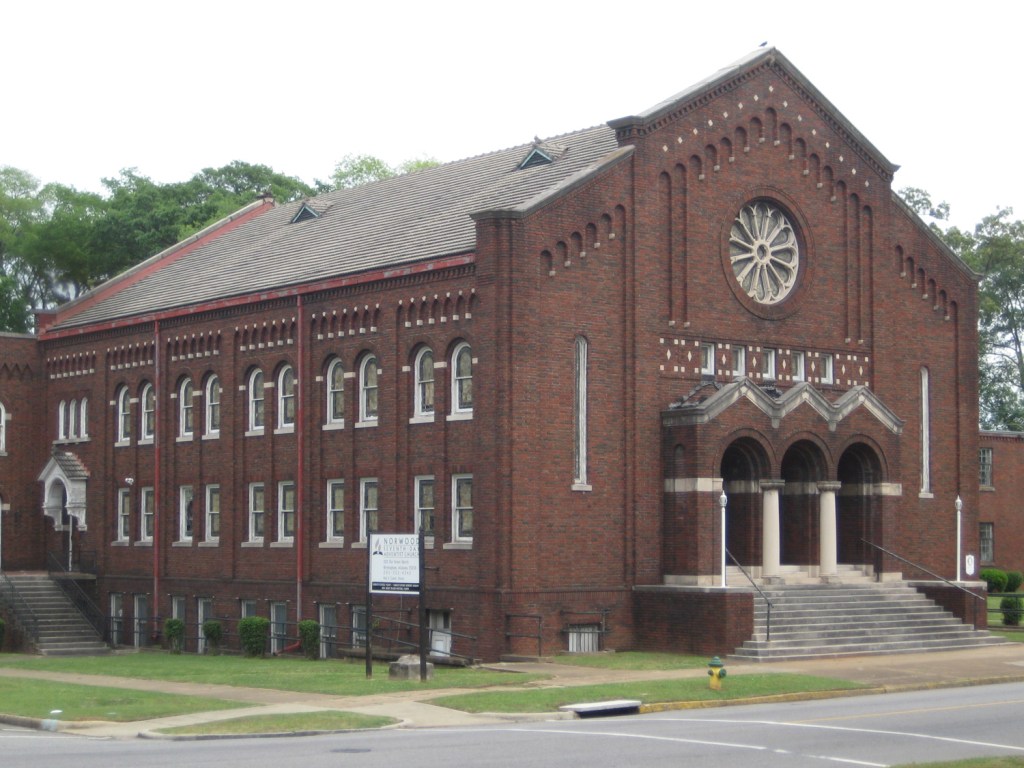 According to the cornerstone Norwood Methodist Episcopal Church, South was established at the neighborhood’s beginning, in 1909 by Rev. R. E. Tyler. Its handsome, Early Christian Revival church was erected in 1921 as 1223 31st Street North. The congregation merged with Wesley Memorial United Methodist Church in 1977 and the building became the home of Norwood Seventh-day Adventist Church, later that congregation also closed. As of this writing, the site is owned by Found Properties LLC.