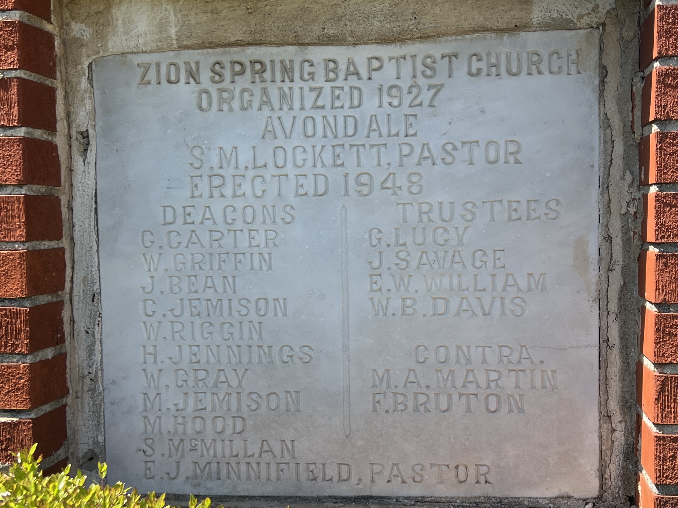 Zion Spring Baptist Church was founded in Birmingham’s North Avondale neighborhood in 1927. It built its current structure in 1948 and later faced it with brick. The church suffered a signficant fire in 2001, but later repaired and recovered from it. Since 2001 the church has been served by Pastor Adam Mixon, a graduate of my department at Samford University.