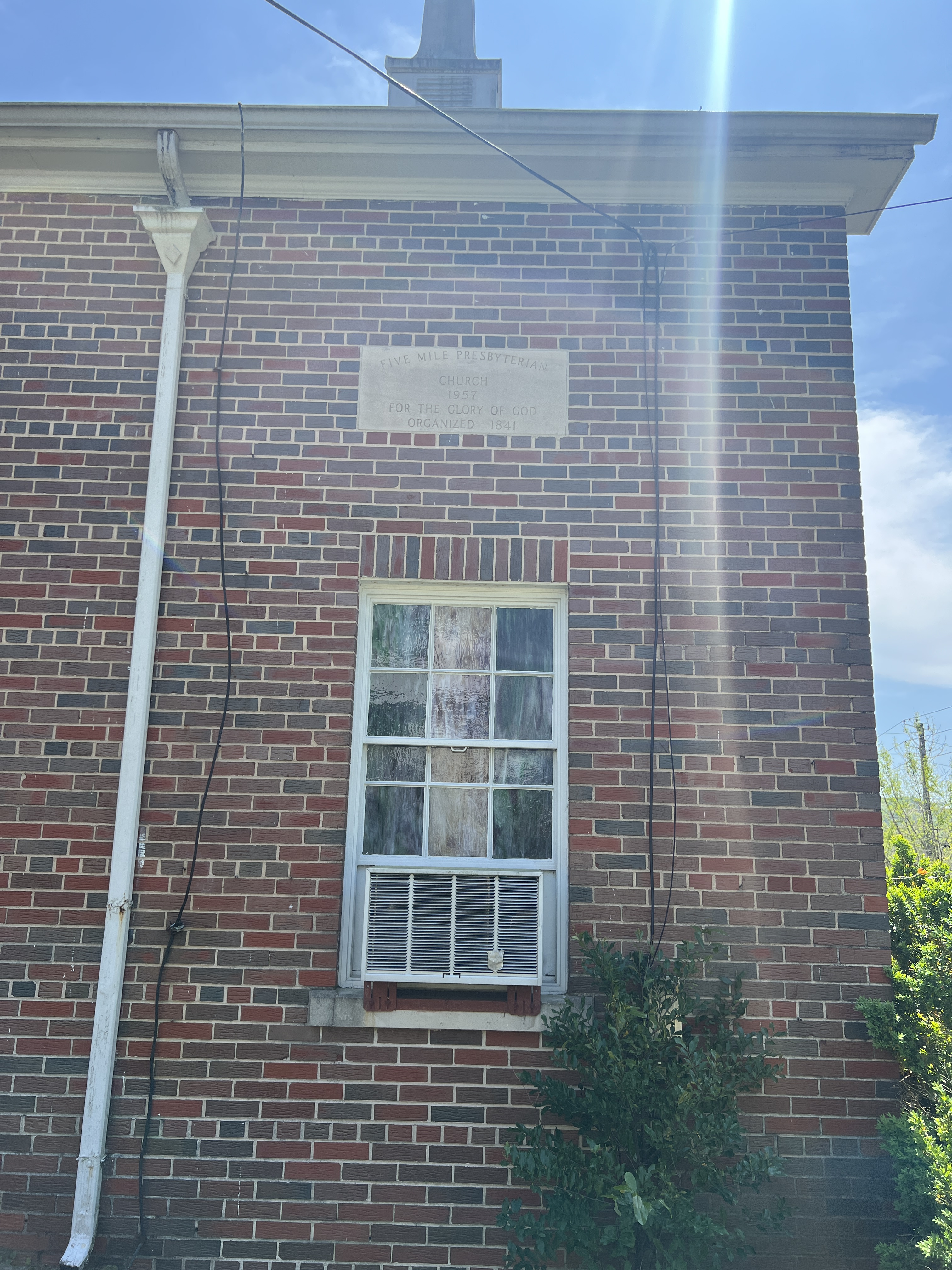 The newer brick building does have a dated stone. Oddly, however, it is not on the front of the building, but over a window on the north side of the building, facing the old church. It is the type of “name stone” that sometimes appeared over the door of the church, particularly in the nineteenth century.