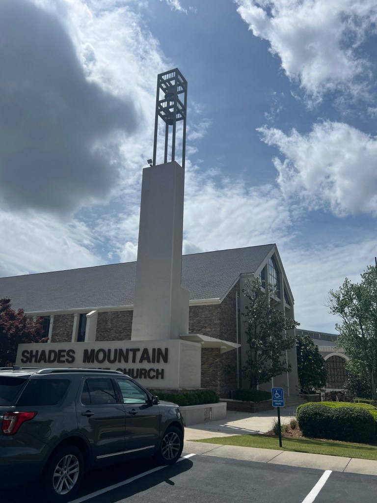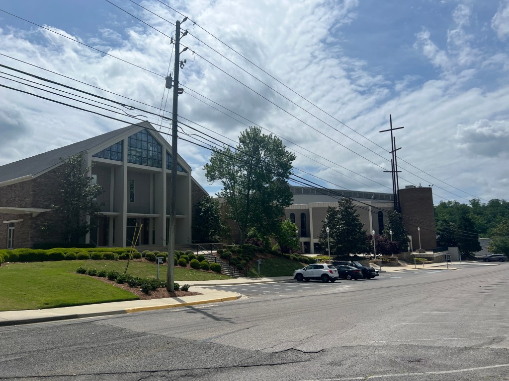 Shades Mountain Baptist Church is near Samford University and very popular with students and some faculty and staff. It is commonly known simply as “Shades.” (This despite at least three other congregations in the vicinity that share this part of their name.) Shades was originally White’s Chapel Baptist Chruch and was founded in 1911. It took its present name when it moved to its present site in 1926. That building was remodled in 1953 and then as the newly formed City of Vestavia Hills continued to grow, it was replaced in 1963.