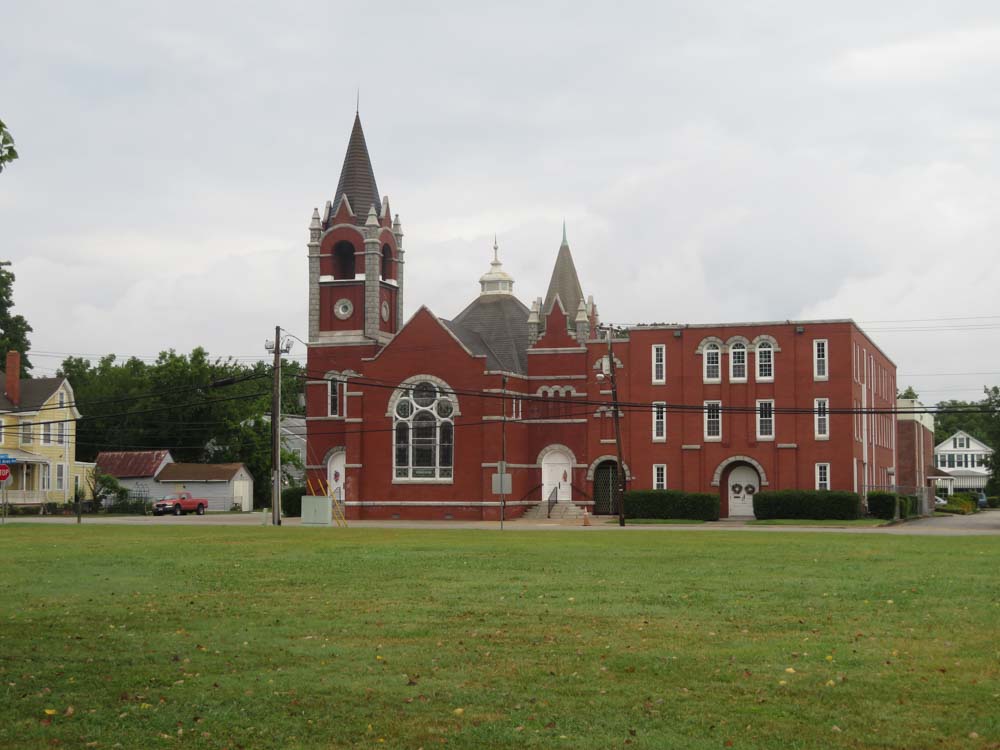 Headed west on US-60 from downtown Hampton, one travels south on a section of Kecoughtan Road originally known as Jackson Street. This was within the old boundaries of the City of Hampton and predates the 1910 completion of Kecoughtan. The first church one sees is Memorial Baptist Church. It is a block off Kecoughtan, but the houses and high school that once separated it from Kecoughtan are gone. It is now very visible. Completed in 1904, it’s a classic neo-medieval auditorium church, a variety of American church architecture brilliantly analyzed by my friend Jeanne Halgren Kilde in When Church Became Theatre: The Transformation of Evangelical Architecture and Worship in Nineteenth-Century