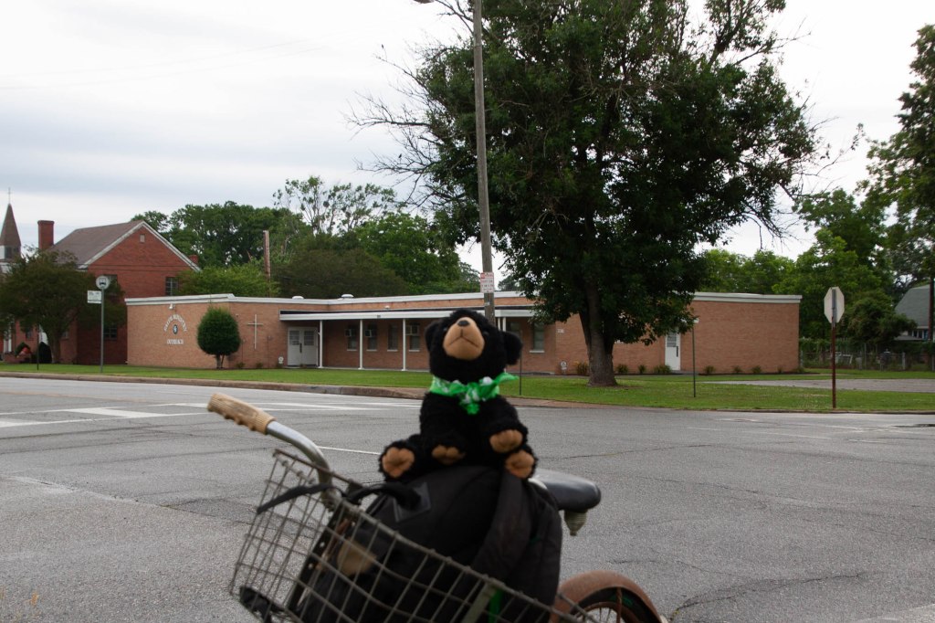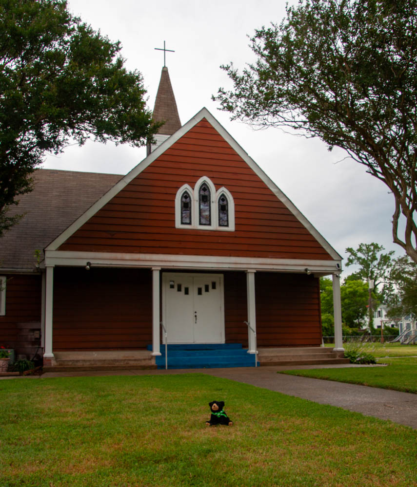 The stuffed animal in the photo, is Winter. She’s a black bear from Yosemite and has been my “model” in several series of church photos. Winter and I traveled the whole route on a Schwinn Corvette II. A classic “paper-boy” bike that my dad bought for my grandfather in the 1960s. Winter rode in the basket with my camera bag. (I also remember riding in the basket down the sea wall on Chesapeake Boulevard.) I decided to go “old school” and use my (digital) SLR for this series instead of my iPhone. Did it make a difference? You can judge by comparing alphabets of churches I shot with the iPhone in London, Hampton, Newport News, and Birmingham, Alabama. Be sure to look for Winter in all the church photos. She sometimes hides, but is always there.